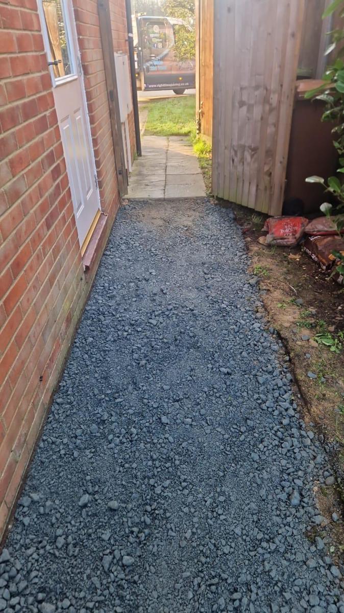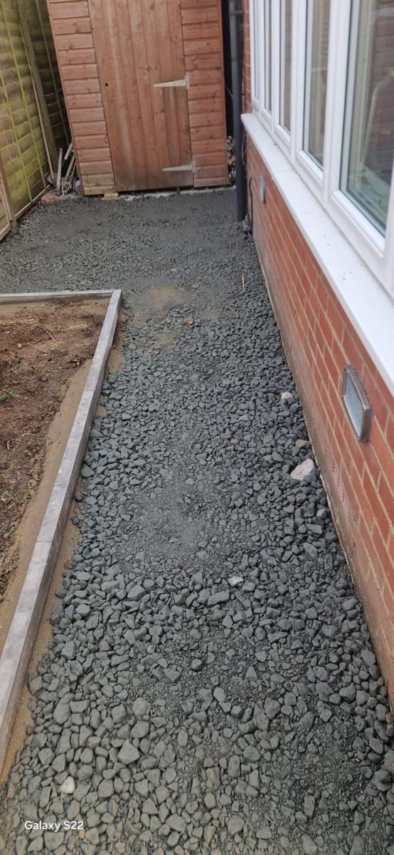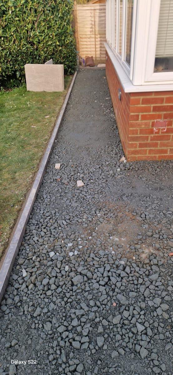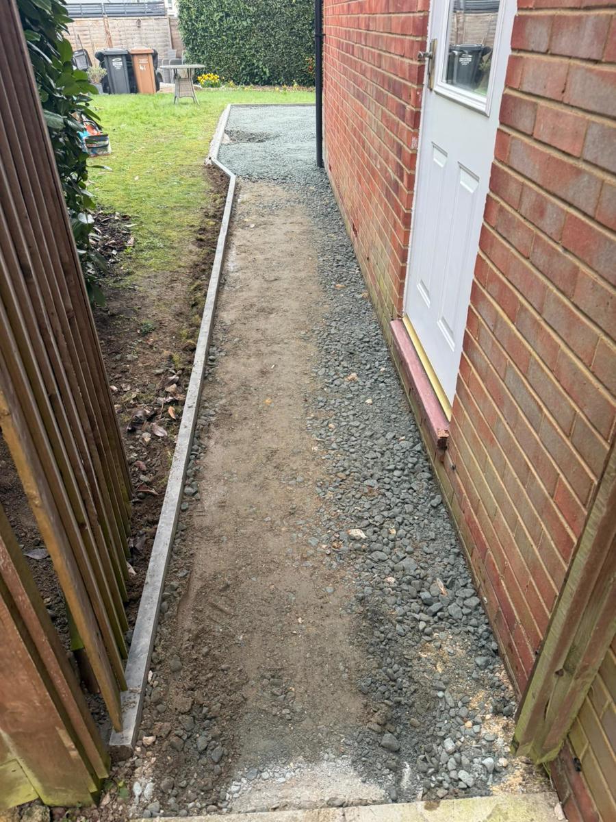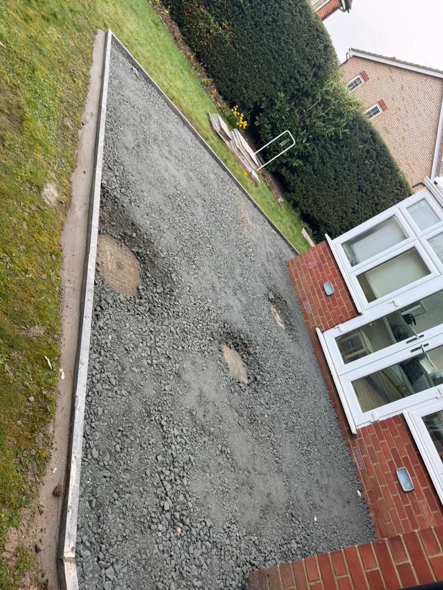 We started by digging out the required areas and installing a solid MOT Type 1 sub-base, making sure everything was properly compacted.