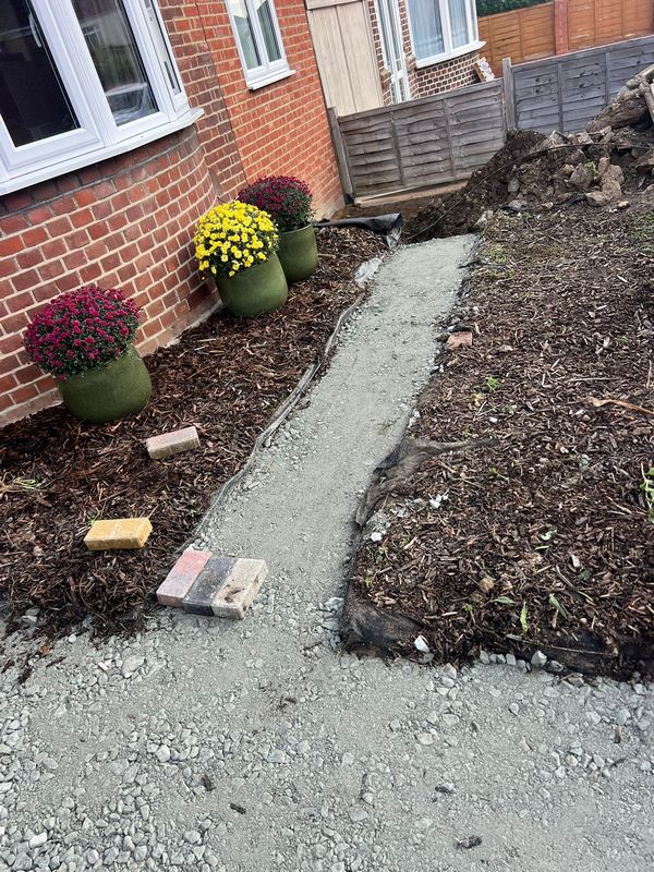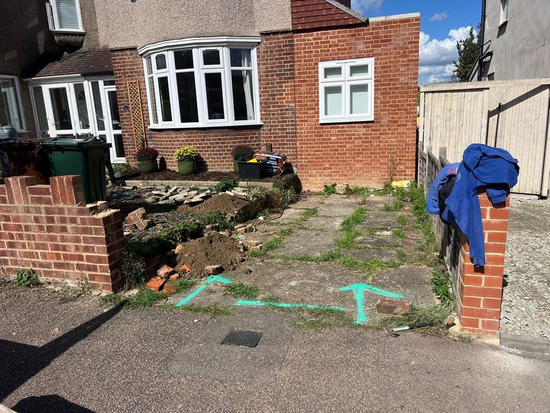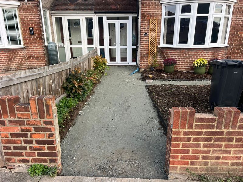 This comprehensive project in Sidcup involved a complete front garden transformation. The old, tired concrete and paving was removed to make way for a stylish new block paved driveway and pathway, complemented by new brickwork and landscaping.