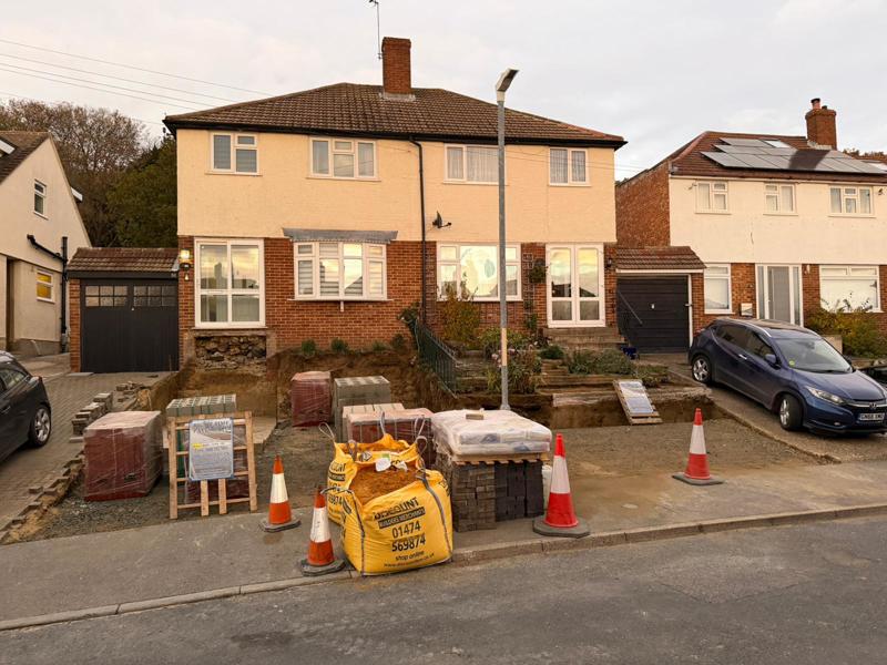 This project in Dartford was a brilliant example of how one driveway makeover can inspire another. We originally began work for the homeowner on the left side, but partway through the build, their neighbour approached us and asked, “Can you do ours too?” — and that’s how this turned into a full double-driveway transformation completed side-by-side.